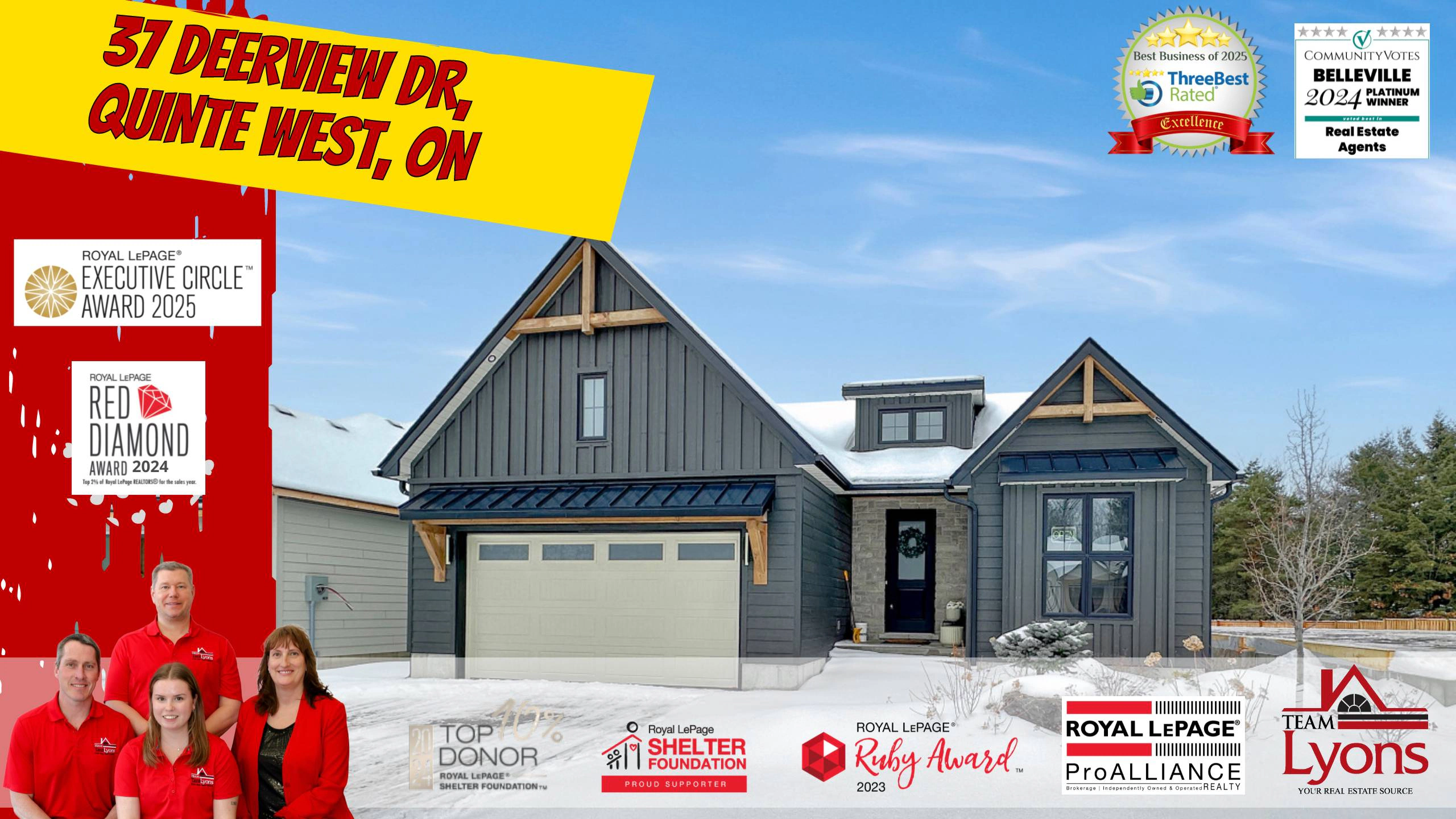 Discover your dream home in Woodland Heights, your gateway to Prince Edward County. Crafted by Van Huizen Homes, this stunning bungalow features engineered composite hardwood siding and an attached two-car garage. With 4 spacious bedrooms and 3 full bathrooms, this home offers an inviting open layout. Enjoy main floor laundry, 9-foot ceilings, and luxurious engineered hardwood floors. The high-end kitchen boasts built-in appliances, while the living room features a beamed tray ceiling and floor to ceiling fireplace. Step out from the dining area to a large covered back deck, perfect for entertaining. The primary bedroom features cathedral ceilings, a walk-in closet, and a spa-like 4-piece ensuite with a glass shower. The fully finished basement includes a large and bright rec room with a fireplace, 9' ceilings and wet bar. Experience modern living in a vibrant upcoming community!